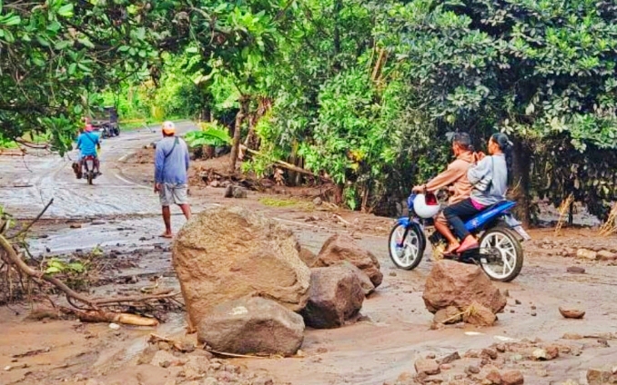 Lumpur Penuhi Akses Jalan Maumere-Larantuka Akibat Banjir Lahar Gunung Lewotobi Laki-laki