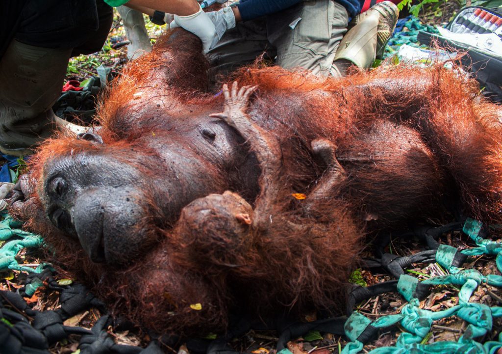 Penyelamatan induk orangutan diperkirakan berusia lebih dari 10 tahun dan bayinya yang berusia 2 bulan ini berjalan dengan baik. Setelah melewati serangkain pemeriksaan medis, dokter hewan IAR Indonesia yang memeriksa kedua orangutan ini menyatakan kedua orangutan ini dalam kondisi sehat.