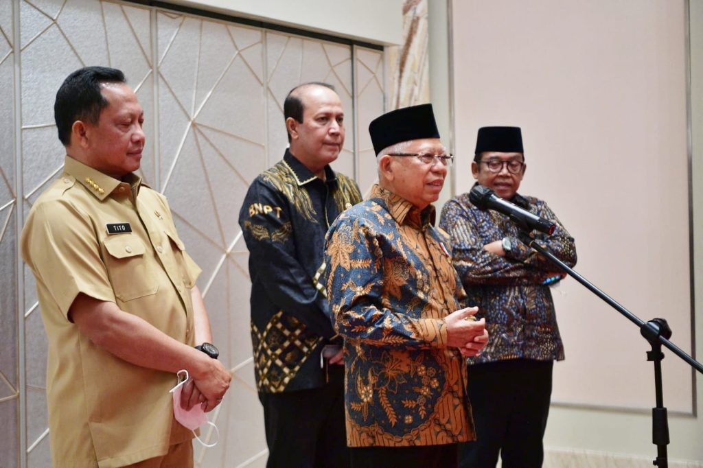 Wakil Presiden RI Ma’ruf Amin, Mendagri Tito Karnavian, dan Kepala BNPT RI Komjen Pol Boy Rafli Amar saat menghadiri dialoh wawasan kebangsaan di Jakarta.