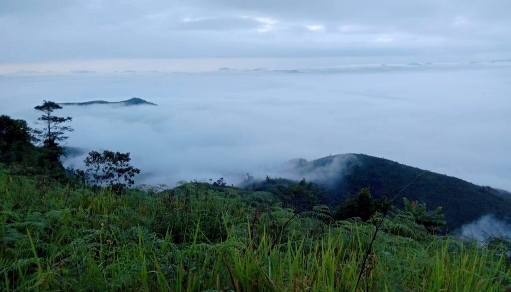 Noyan, reportasenews.com – Bayangkan menyeruput kopi panas di puncak bukit, ditemani hamparan lautan awan yang bergulung perlahan di antara puncak-puncak hijau. Angin sepoi-sepoi membawa kesegaran khas pegunungan, sementara pandangan lepas ke horizon menghidangkan lukisan alam yang tak ternilai. Inilah pengalaman yang ditawarkan oleh Bukit Ningan (687 mdpl)- sebuah permata tersembunyi di Dusun Kobuk, Desa Idas, Kecamatan Noyan, Kabupaten Sanggau, Kalimantan Barat.