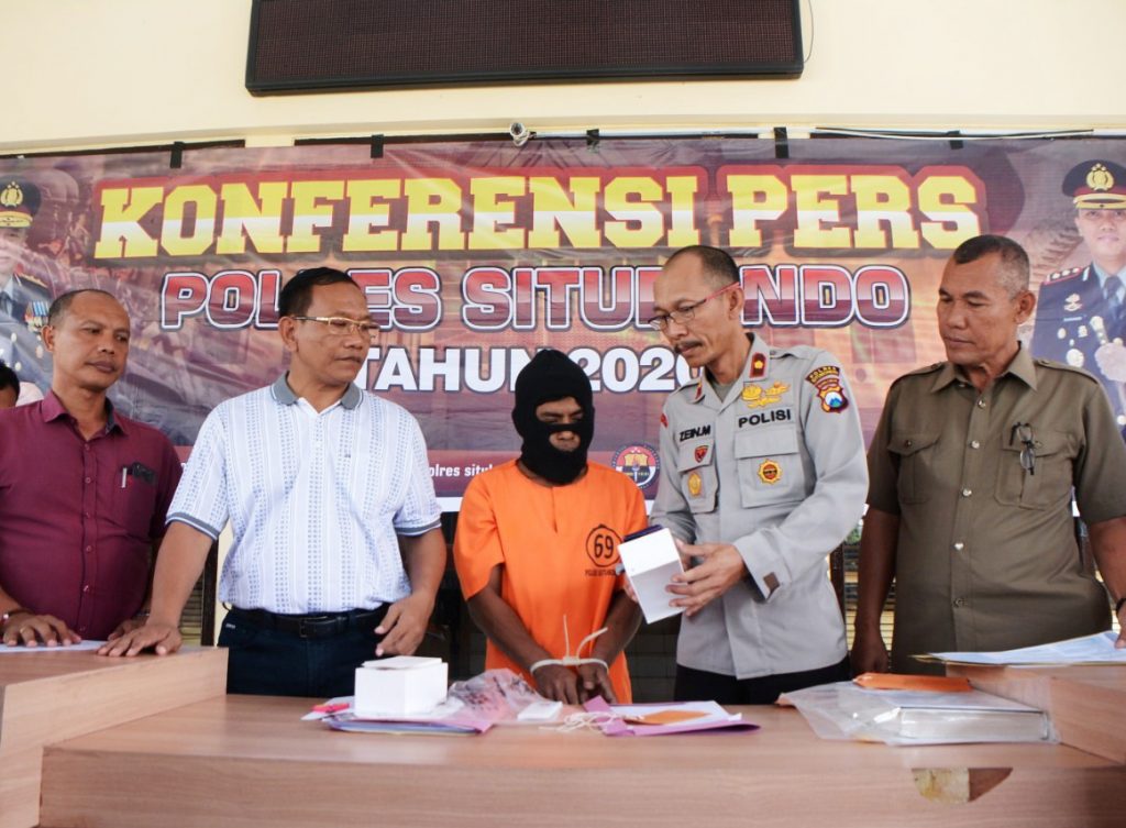 Akibat perbuatan nekatnya, pria yang juga berprofesi sebagai petani itu, ditangkap di rumahnya di Desa Kumbangsari, Kecamatan Jangkar oleh tim Resmob wilayah timur Polres Situbondo. Selain itu, dari rumah tersangka Sahwari, petugas berhasil mengamankan barang bukti satu ponsel merk Oppo.