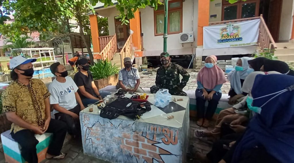 Mayor Inf Ali Anwar Faola (Danramil-04/KS) menyampaikan rasa terimakasih kepada Relawan mahasiswa yang telah berpartisipasi menjadi Relawan Nakes Covid-19 dan berharap Para relawan ini dapat menerima dengan baik ilmu yang akan di berikan oleh Dr.Sigit (Kepala Puskesmas Kecamatan Seribu Utara).