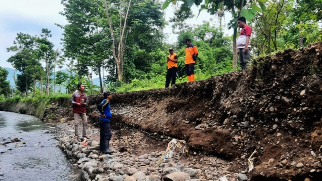 Caption: plengsengan sungai sepanjang 180 meter ambrol.