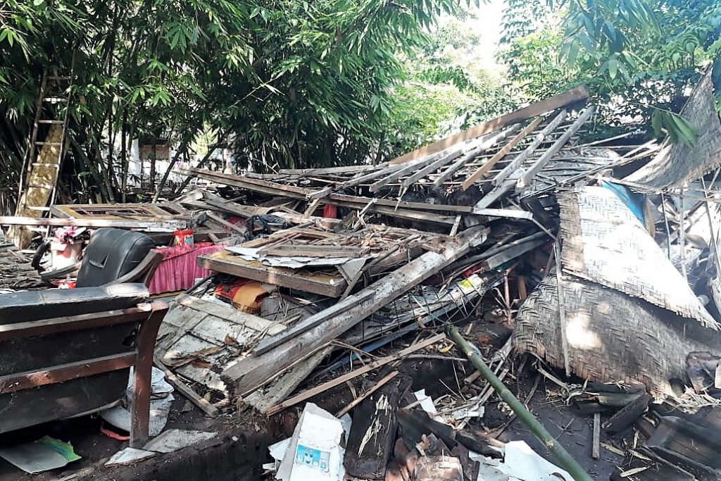 Selain mengakibatkan rumah milik korban kondisinya rata dengan, sebagian perabot rumah tangga milik nenek miskin, yang diketahui hidup sebatangkara juga rusak, akibat terimpa bangunan rumahnya yang roboh sekitar pukul 02.20 WIB.