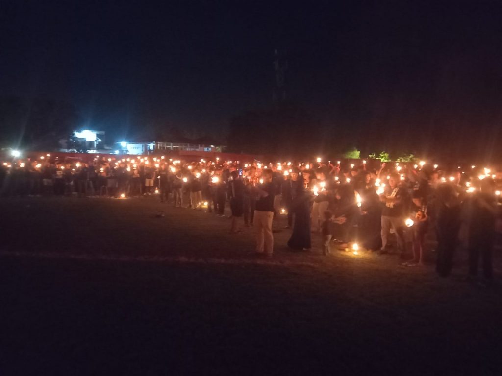 Doa bersama dengan menyalakan 1000 lilin sebagai bentuk duka cita yang dalam sangat mengharukan suasana hati peserta doa yang ada di dalam stadion Ketonggo Beran Ngawi