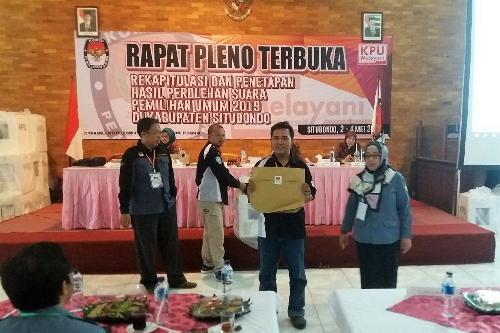 Dalam penghitungan yang dilakukan di salah satu hotel di Kota Situbondo, pasangan Capres-Cawapres nomor urut 01 memperoleh sebanyak 202.789 atau 49,87 persen, sedangkan pasangan Capres-Cawapres nomor urut 02 memperoleh sebanyak 203.812 suara atau 50,8 persen. Dengan selisih suara hanya 1.023 suara.