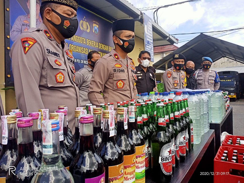 Miras yang berhasil diamankan dari para penjual meliputi arak jawa sebanyak 220 botol kemasan air mineral 1,5 liter. Selain itu turut diamankan juga 66 botol bir dan anggur merah 176 botol. Total keseluruhan miras berbagai jenis yang berhasil diamankan sebanyak 462 botol.