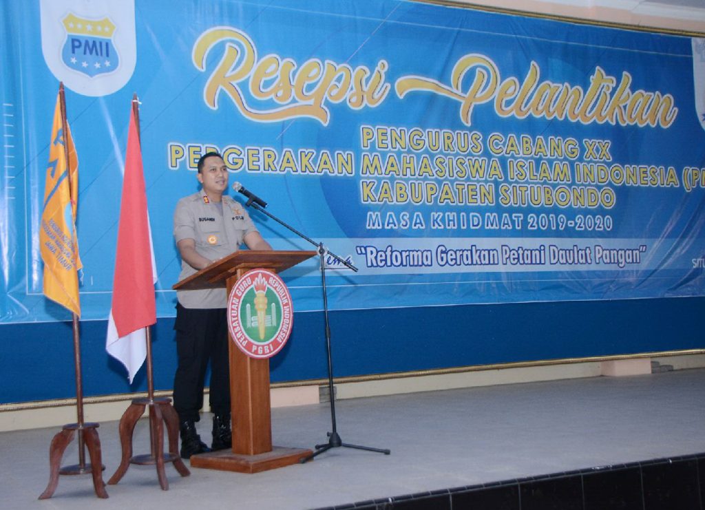 Kapolres Situbondo AKBP Sugandi, mengajak mahasiswa yang tergabung di PMII Situbondo, agar ikut memerangi peredaran narkoba. Keberadaan PMII sangat strategis untuk ikut memajukan Kabupaten Situbondo.”Dengan harapan, ke depan Kabupaten Situbondo bebas dari peredaran narkoba,”kata AKBP Sugandi, Rabu (5/2/2020).