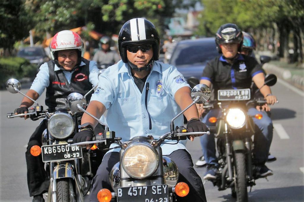 Didi berpatroli dengan mengendarai kendaraan roda dua lawas (jaman dulu) keliling kota Khatulistiwa memantau situasi ke Pospam Imlek.