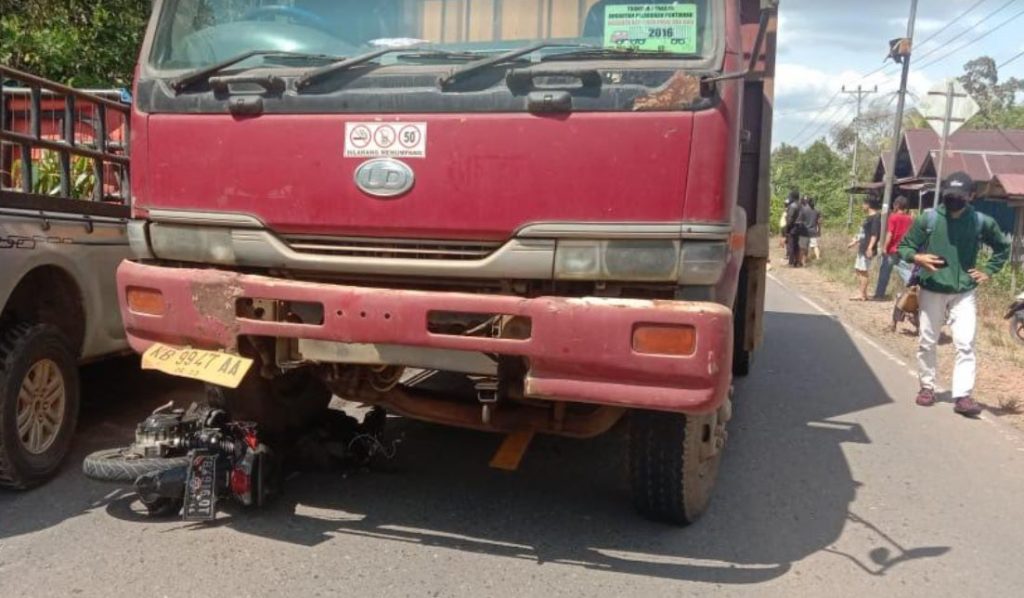 “Sesampainya di TKP di Desa Korek, ia mendahului mobil yang berada di depan nya kemudian saat mendahului sepeda motor menabrak bagian belakang mobil tersebut sehinga sepeda motor terjatuh ke jalur sebelah kanan dan saat bersamaan dari arah berlawanan yaitu dari arah Tayan menuju Pontianak datang mobil tronton KB 9947 AA yang dikemudikan oleh YA (41) karena jaraknya terlalu dekat terjadi tabrakan tersebut,” jelasnya.