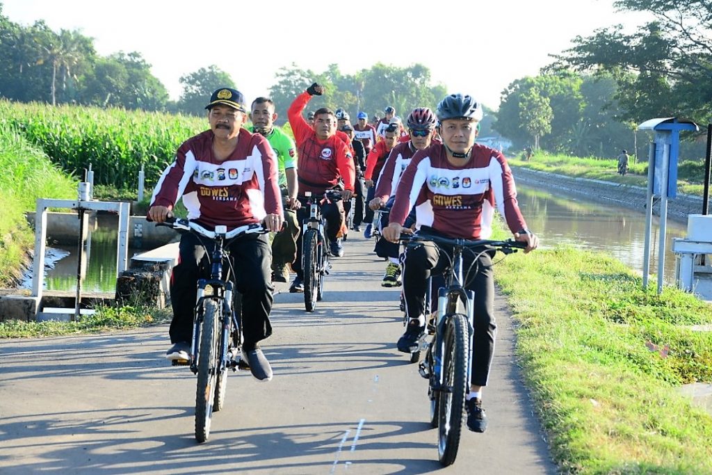 Situbondo,reportasenews.com – Untuk mencairkan suasana paska Pemilu serentak Tahun 2019, Kapolres Situbondo AKBP Awan Hariono bersama anggota Forum Komunikasi Pimpinan Daerah (Forkopimda) Situbondo, melakukan gowes bareng keliling Kota Situbondo, Jumat (3/5/2019).