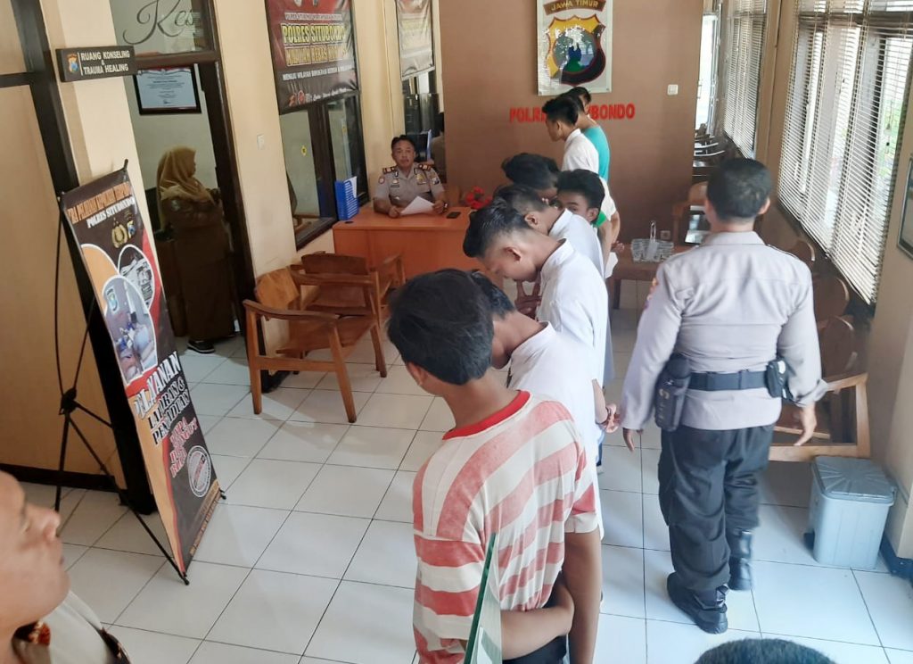 Kasat Sabhara Polres Situbondo AKP Moh Hasanudin mengatakan, selain didata dan dilakukan pembinaan, namun untuk memberikan efek jera terhadap puluhan siswa SMK tersebut, sebelum dipulangkan ke rumahnya masing-masing, mereka disuruh menulis surat pernyataan agar tidak mengulangi perbuatannya lagi.