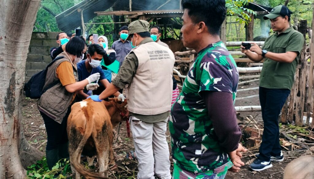 “Begitu menerima laporan, kami langsung turun ke lokasi dan melakukan vaksinasi, pengobatan hingga penyemprotan desinfektan di area kandang sapi,”katanya.