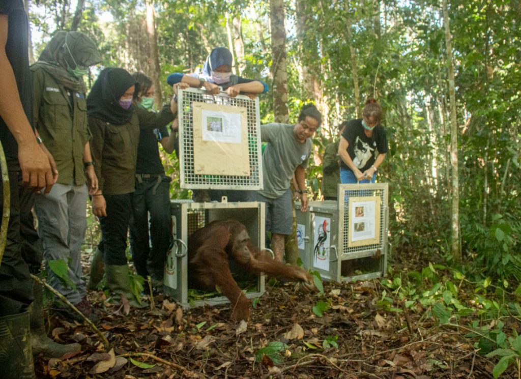 Tidak hanya dua individu orangutan, tiga orangutan lain bernama Merah, Ujang, dan Utat juta turut dilepasliarkan di lokasi yang sama.