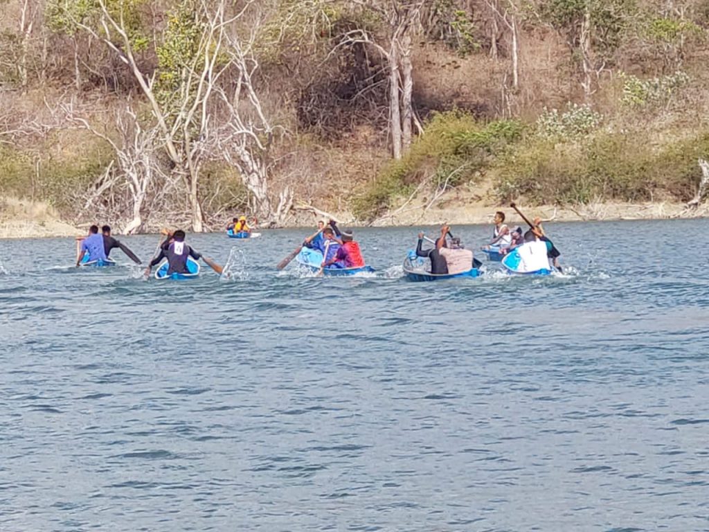 Disaksikan reportasenews.com di Embung Uikiban, perahu yang digunakan oleh peserta pun adalah perahu fiber berukuran sekitar tiga meter dengan lebar 40-50 centimeter yang disiapkan oleh panitia dengan alat dayung terbuat dari kayu.