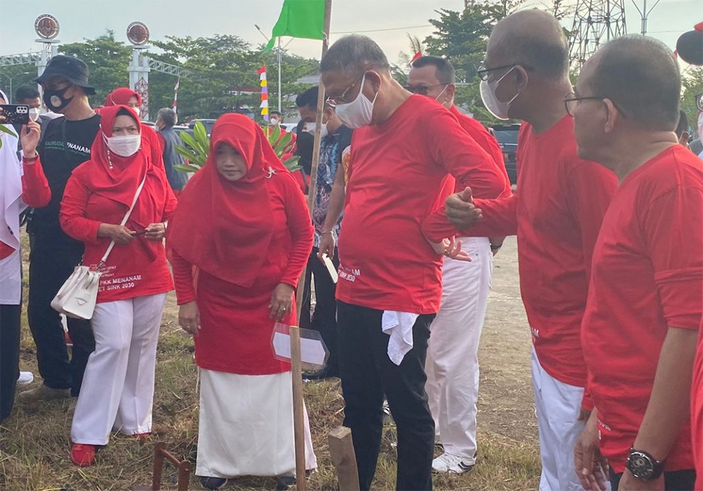 Pontianak, Kalimantan Barat, reportasenews.com – Menindaklanjuti Program Gerakan Pembagian 10 Juta Bendera Merah Putih dari Kementerian Dalam Negeri Republik Indonesia dan sebagai rangkaian Peringatan Hari Ulang Tahun ke-77 Republik Indonesia, Gubernur Kalimantan Barat, Sutarmidji, membagikan bendera merah putih kepada masyarakat sekaligus mengikuti Gerakan Penanaman Pohon Endemik di Kawasan GOR Khatulistiwa, Selasa (16/8/2022).