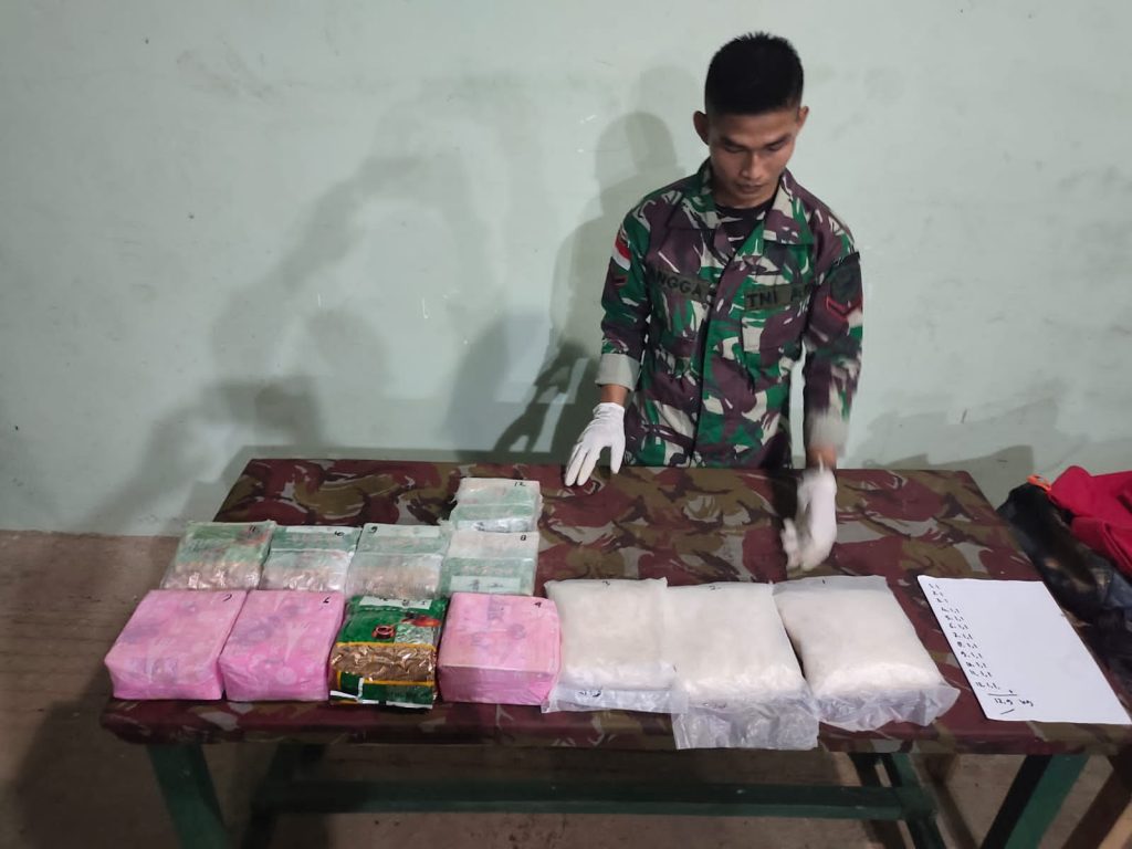 Penyelundupan sabu sebanyak 12 paket dengan berat 12,9 kg di Desa Sentabeng, Bengkayang digagalkan Satgas Pamtas 645/ Gardatama Yudha. (foto Pendam XII/ Tanjungpura).