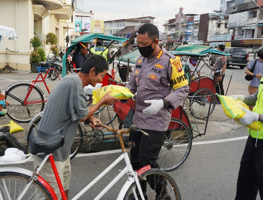 Kapolresta Pontianak Sebar Bantuan Langsung Kepada Warga dan Pekerja Informal Terdampak Covid 19