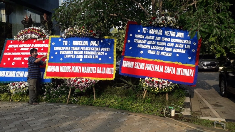 Kirim Karangan Bunga, Nasabah Mahkota Group Minta Kapolda Metro Jaya Berlaku Adil