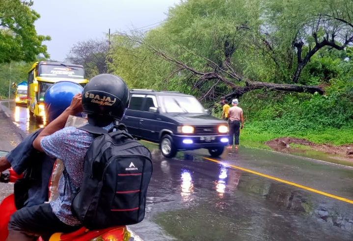 Hujan Deras, Pohon di Jalur Pantura Situbondo Tumbang