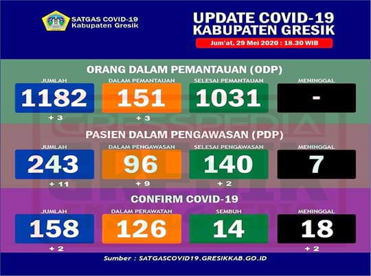 Update Covid-19 Gresik: ODP 1216, PDP 325, Konfirmasi Positif Tembus 238 Kasus