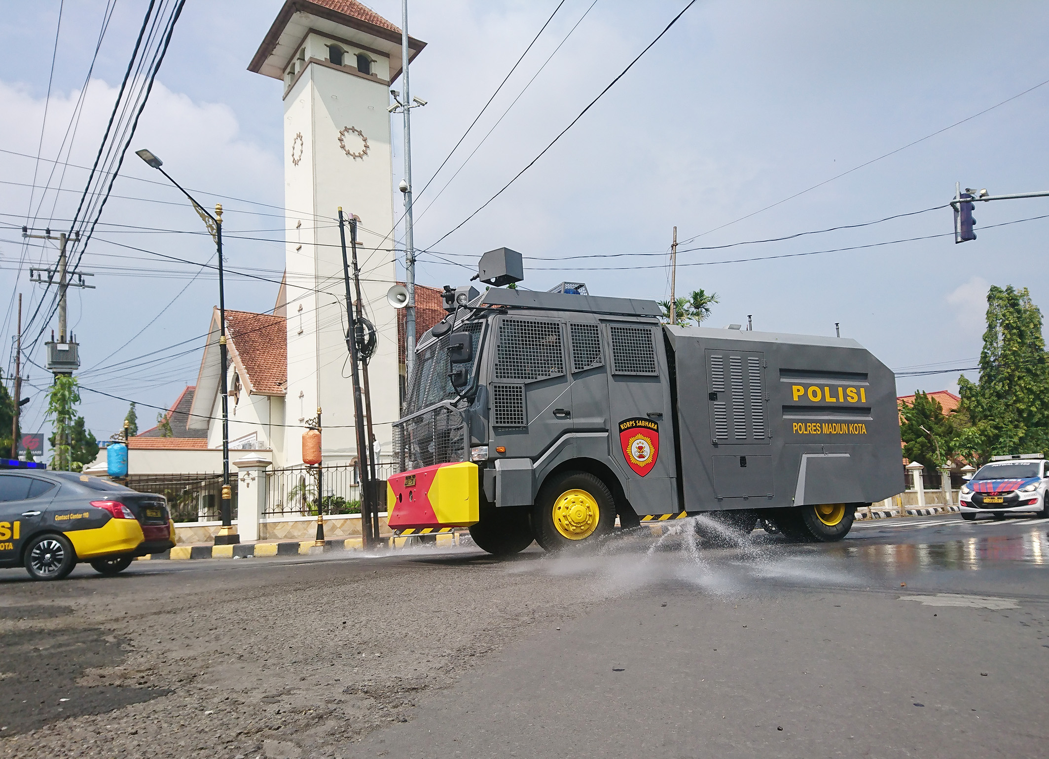 Satgas Covid 19 Kota Madiun Semprot Disenfektan Seluruh Jalan Protokol untuk Sterilisasi