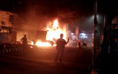 Truk Pengangkut Sampah Terbakar di SPBU