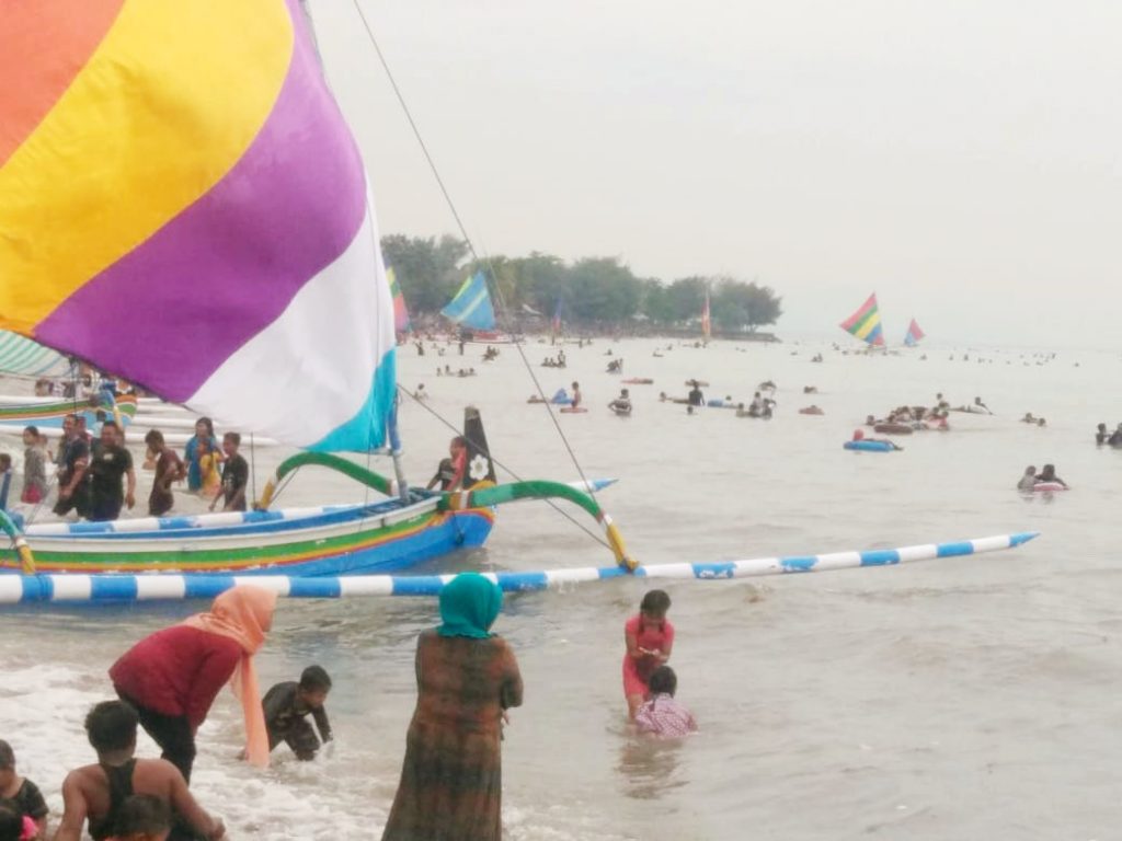 Seperti kepadatan wisatawan yang berkunjung ke wisata pasir putih itu terlihat di setiap sudut lokasi wisata. Mulai dari pintu masuk, lokasi pemandian pantai, dan sarana wisata lainnya. Para pengunjung tampak cukup menikmati panorama pantai setempat, mulai dari mandi di laut sampai berkeliling dengan perahu layar. Bahkan, hamparan pasir di tepian pantai juga dipenuhi para wisatawan.