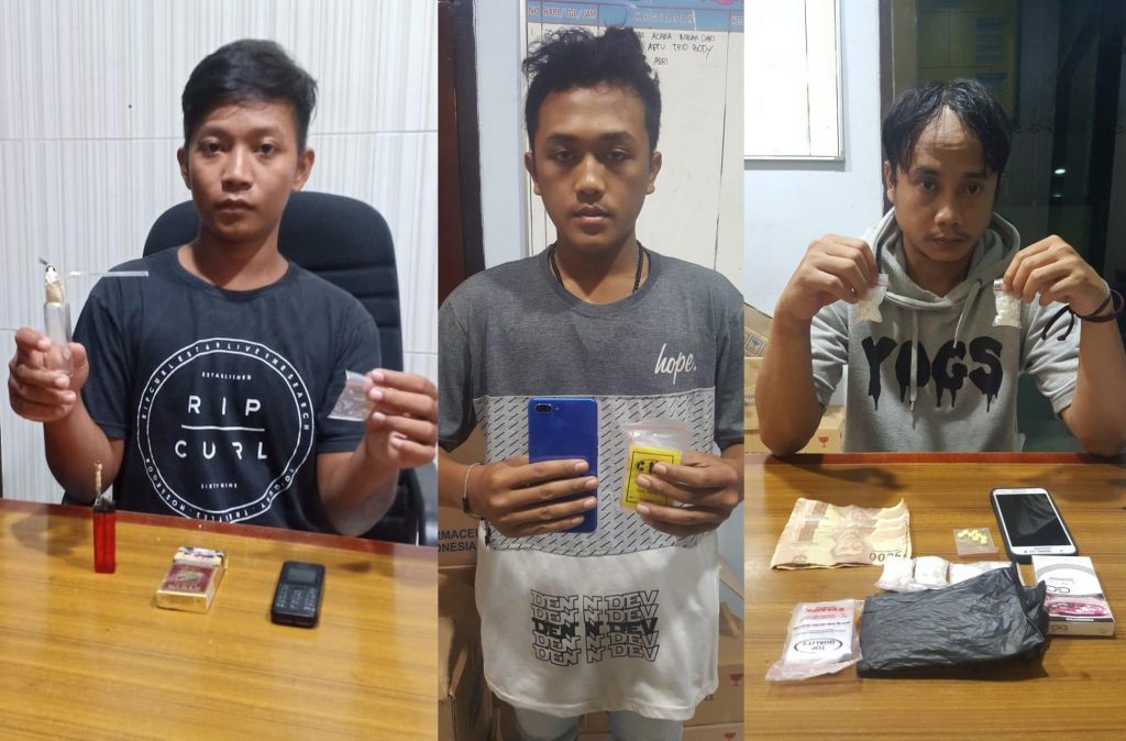 Dari tangan ketiga tersangka polisi berhasil menemukan dan mengamankan barang bungkti berupa Shabu dengan berat kotor 0,22 Gram beserta alat hisapnya, 192 butir pil warna putih logo ‘Y’ dan 8 butir pil warna kuning logo ‘DMP’.