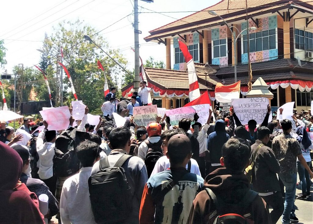 Bahkan, begitu sampai di pintu masuk Kantor DPRD Kabupaten Situbondo, mereka membentangkan poster hujatan dan berorasi, yang meminta Presiden Jokowi agar mengeluarkan PERPPU sebagai pengganti UU KPK dan menolak RKUHP.