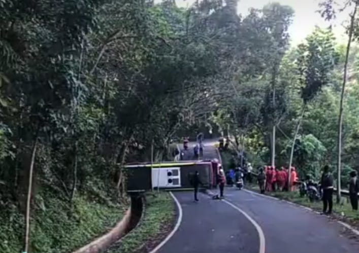 Bus Karyawan PLTU Terguling di Tanjakan Pacitan, 19 Penumpang Terluka
