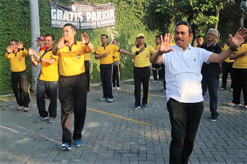 Senam bersama yang digelar Kapolres Gresik AKBP Wahyu S Bintoro bertempat di jalaman Warung Apung Rahmawati Jl. Dr Wahidin Sudiro Husodo Kebomas Gresik. Pada kesempatan tersebut juga dihadiri Wakil Bupati (Wabup) Gresik H. Moh. Qosim, Pengurus Majelis Dzikir Al Wafa Habib Ismail Al Habsyi ( pemimpin doa ), Ketua Tim Penggerak PKK Hj. Maria Ulfa Sambari, Ketua Perwosi Hj. Zumrotus Solihah Qosim, Ketua Bhayangkari Gresik Ny. Sistri Wahyu S Bintoro, Ketua DWP Ny. Betty, Tomas Kecamatan Kebomas serta masyarakat sekitar.