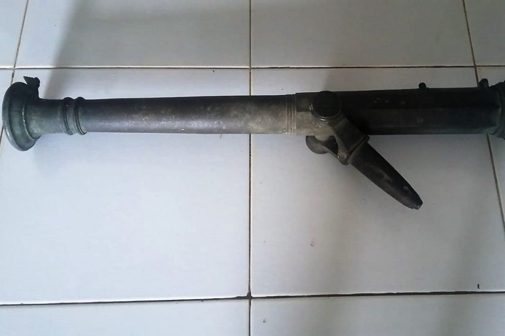 “Satu pucuk meriam kuno jenis Cetbang (berat 23 Kg, Panjang 84 Cm, Kaliber 20 MM yg diduga dibuat pada abad ke 16-17 M) diserahkan oleh Bapak Yulianto (48) seorang petani Dusun Sungai Lalau, Desa Nanga Kelapan, Kecamatan Ketungau Tengah, Kabupaten Sintang kepada secara sukarela kepada anggota Pos Tanjung Lesung,” kata Dansatgas Pamtas Yonif 320/BP, Letnan Kolonel Inf Imam Wicaksana, di Pos Kotis Nanga Badau, Kapuas Hulu, Kamis (14/2/19).